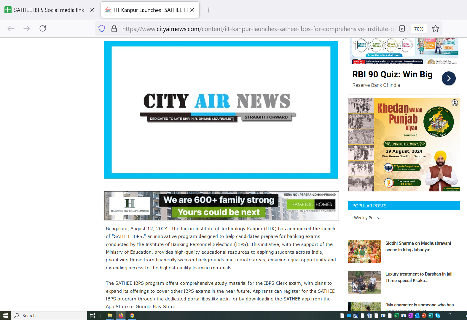 Media coverage of SATHEE