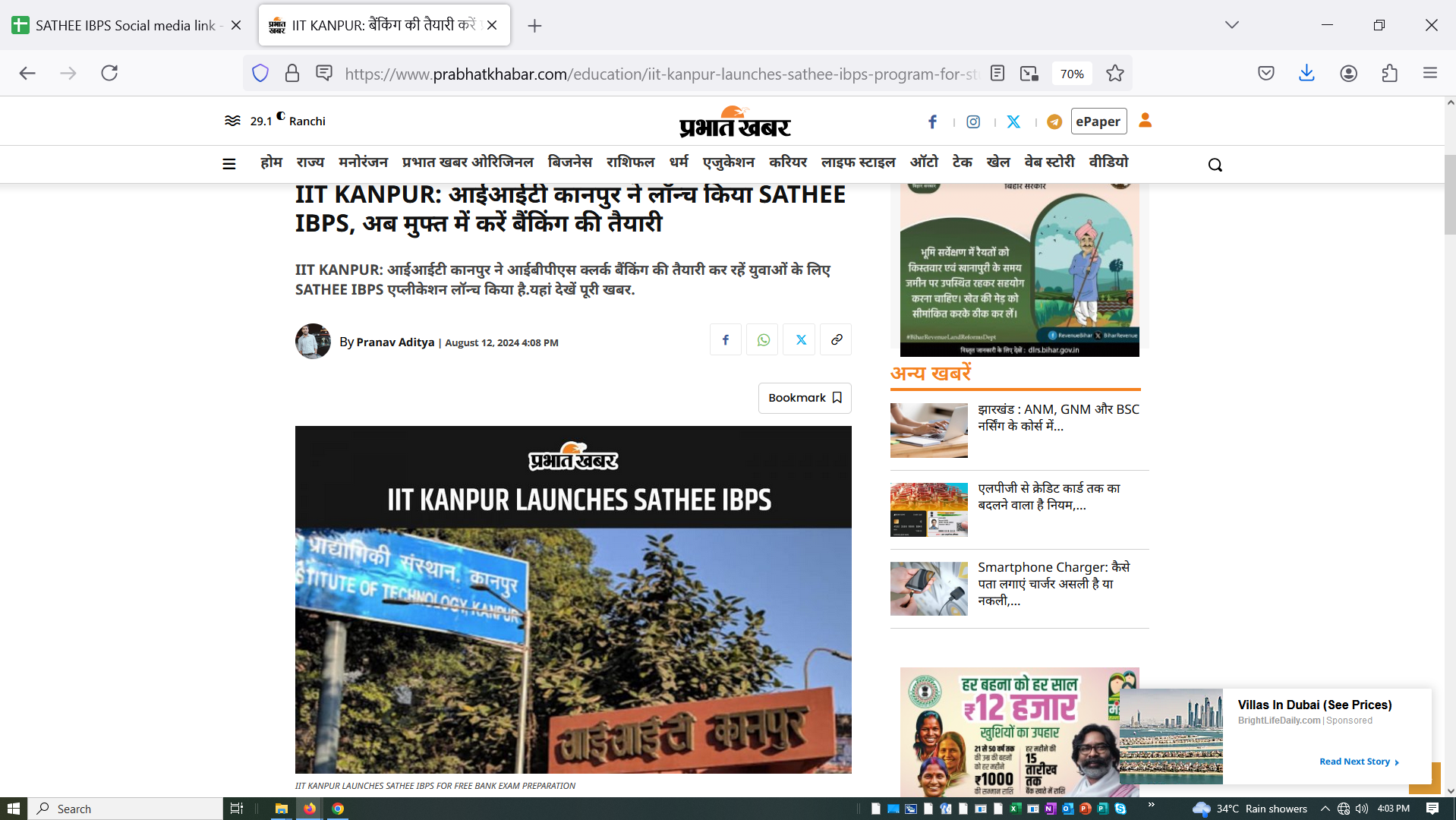 IIT KANPUR आईआईटी कानपुर ने लॉन्च किया SATHEE IBPS, अब मुफ्त में करें बैंकिंग की तैयारी