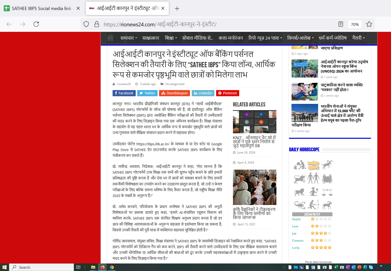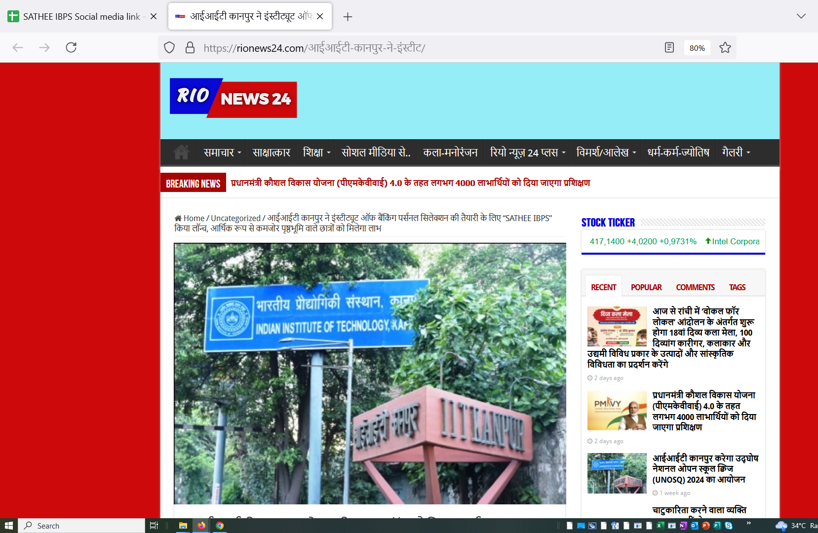 आईआईटी कानपुर ने इंस्टीट्यूट ऑफ बैंकिंग पर्सनल सिलेक्शन की तैयारी के लिए SATHEE IBPS किया लॉन्च, आर्थिक रूप से कमजोर पृष्ठभूमि वाले छात्रों को मिलेगा लाभ