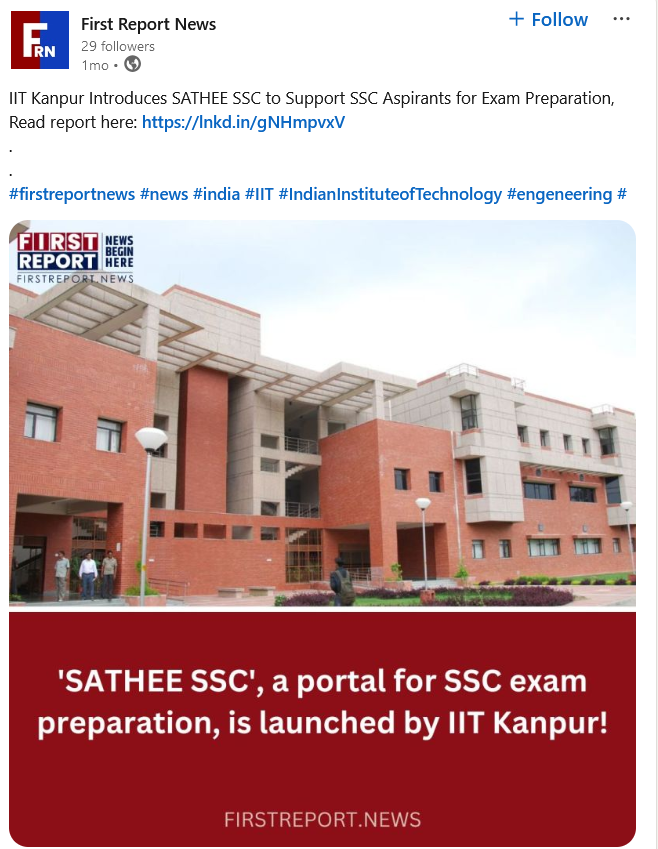 IIT Kanpur Introduces SATHEE SSC to Support SSC Aspirants for Exam Preparation, Read report here: https://firstreport.news/.../free-online-platform-for.../ . . #firstreportnews #news #india #IIT #IndianInstituteofTechnology #engeneering #iitkanpur
