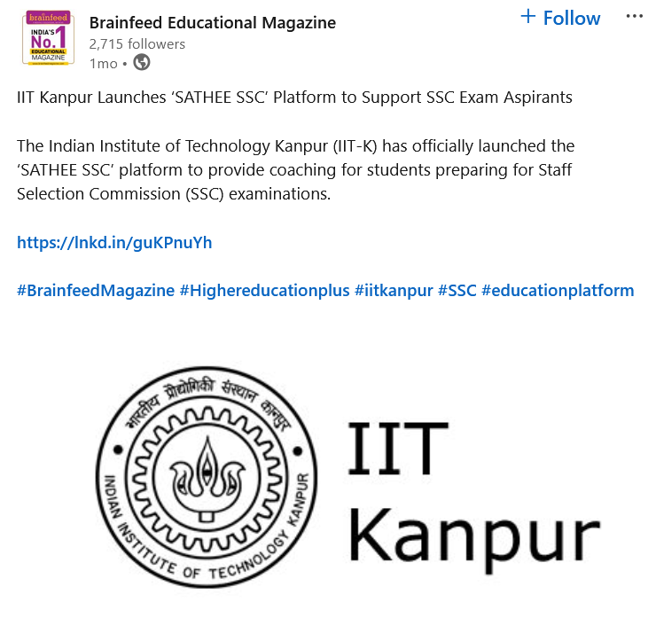 #BrainfeedMagazine #Highereducationplus #iitkanpur #SSC #educationplatform