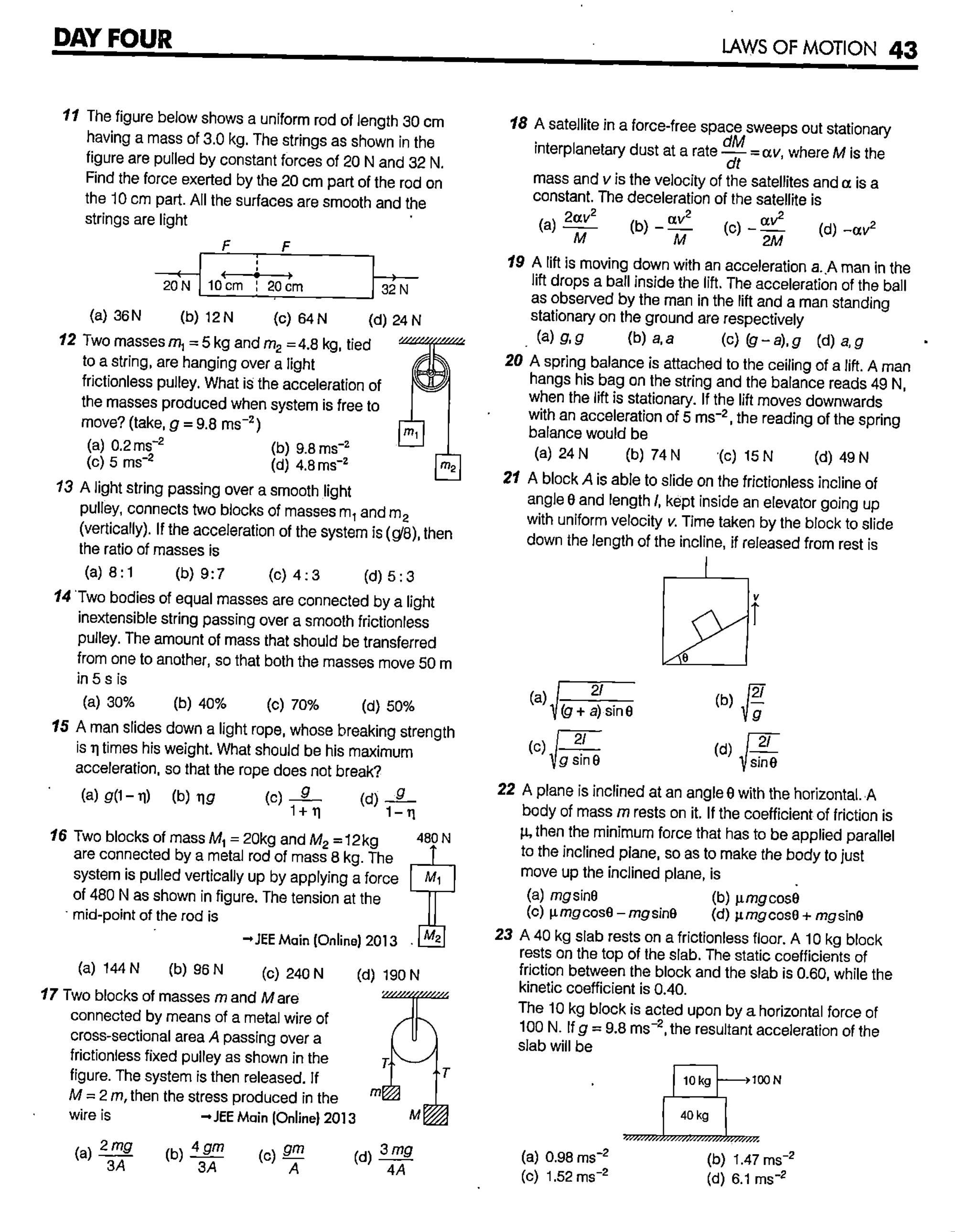 ##### एक व्यक्ति एक हल्की रस्सी पर नीचे फिसलता है, जिसकी भंजन सामर्थ्य उसके भार का $\eta$ गुना है। उसका अधिकतम त्वरण क्या होना चाहिए ताकि रस्सी न टूटे?