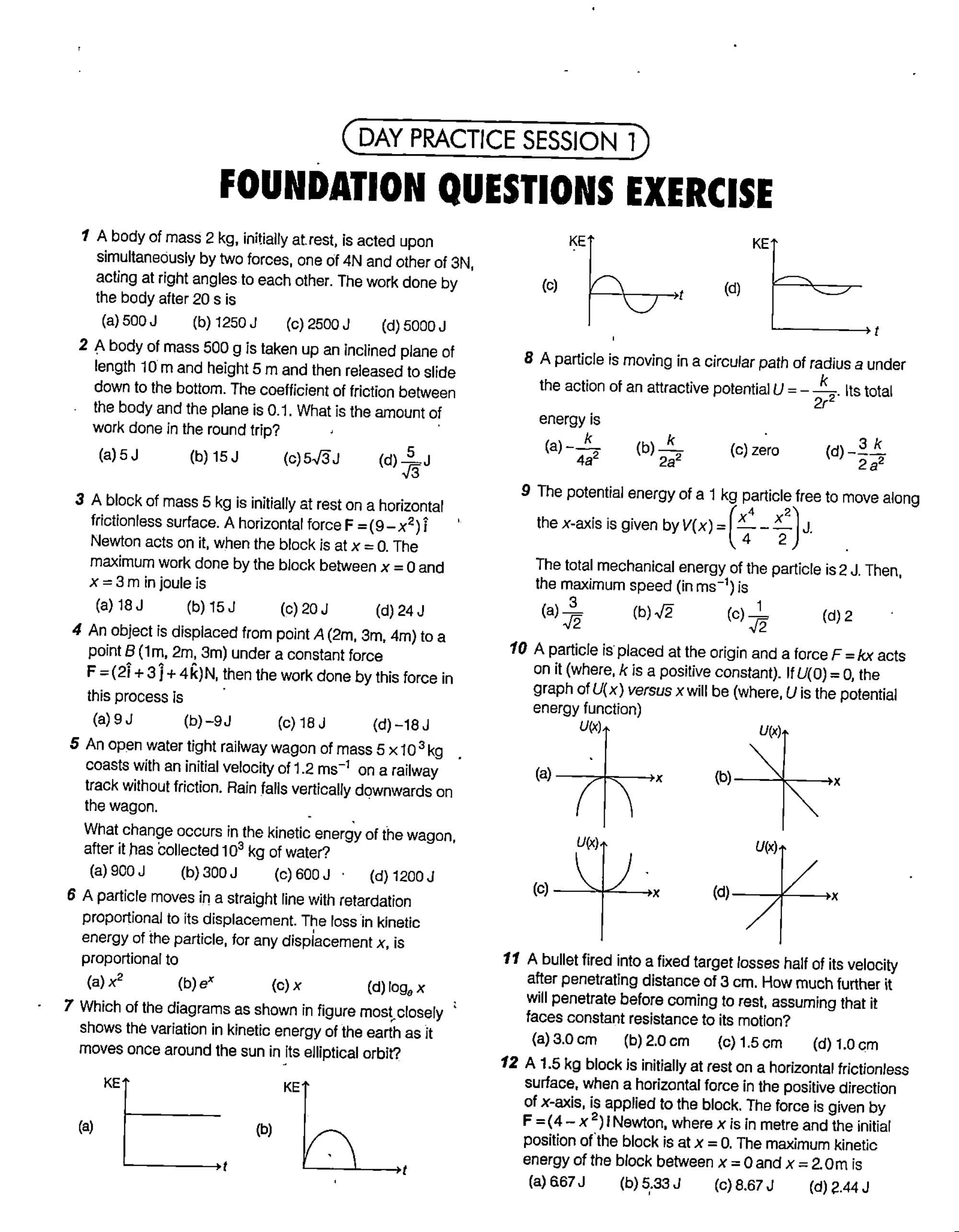 ##### 5 kg द्रव्यमान का एक ब्लॉक प्रारंभ में एक क्षैतिज घर्षण रहित सतह पर विराम में है। एक क्षैतिज बल $F=(9-x^{2}) \hat{i}$ N इस पर कार्य करता है, जब ब्लॉक $x=0$ पर है। $x=0$ से $x=3 \mathrm{m}$ के बीच बल द्वारा किया गया अधिकतम कार्य जूल में है