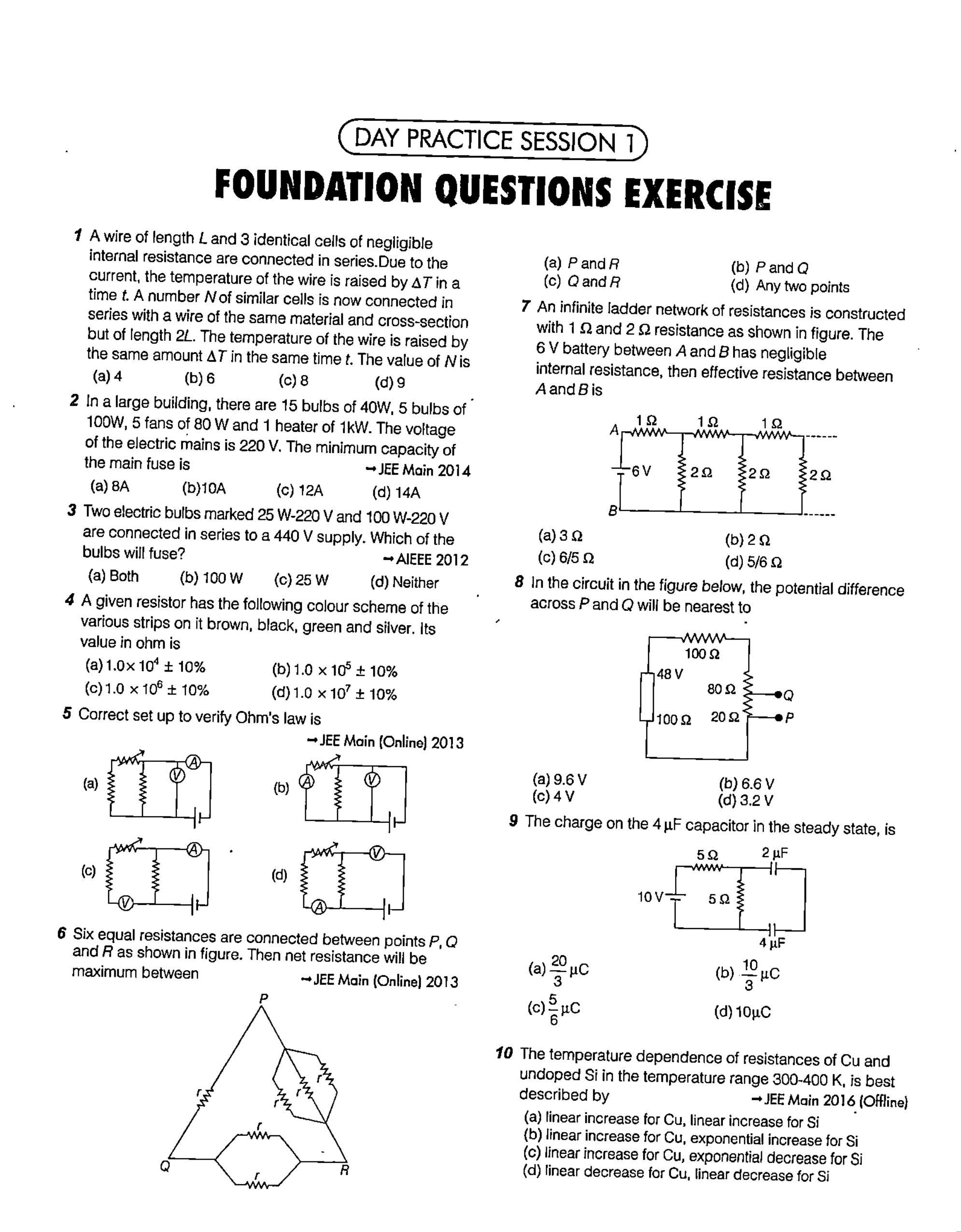 ##### नीचे चित्र में सर्किट में, $P$ और $Q$ के बीच विभवांतर होगा (निकटतम)