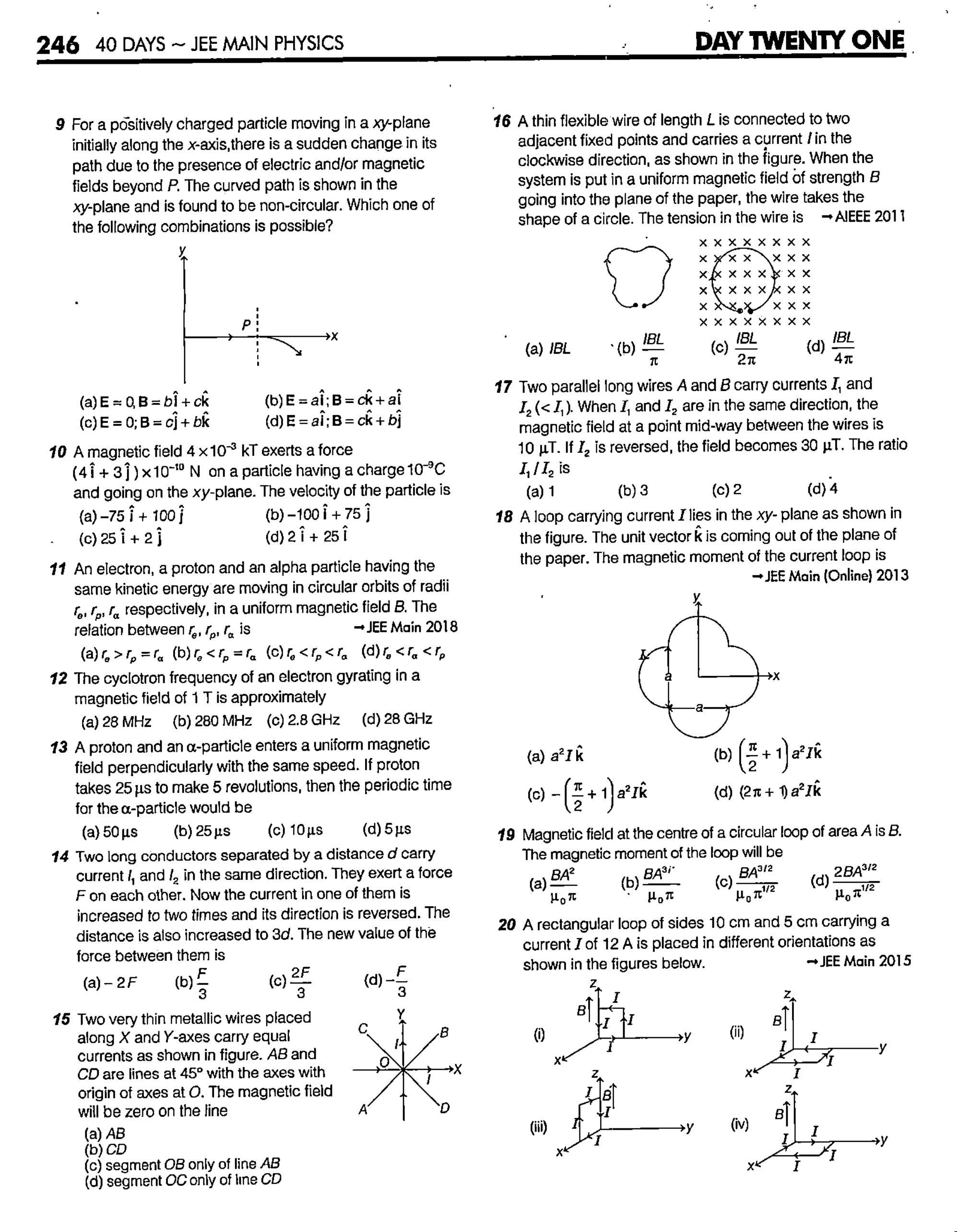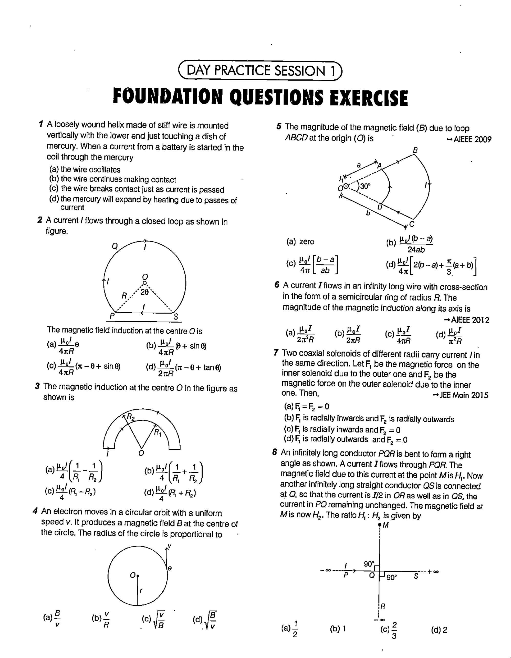 ##### एक अनंत लंबाई के तार में, जिसका अनुप्रस्थ काट अर्धवृत्ताकार वलय के रूप में है और त्रिज्या $R$ है, धारा $I$ प्रवाहित हो रही है। इसके अक्ष के अनुदिश चुंबकीय प्रेरण का परिमाण है $\rightarrow$ AIEEE 2012