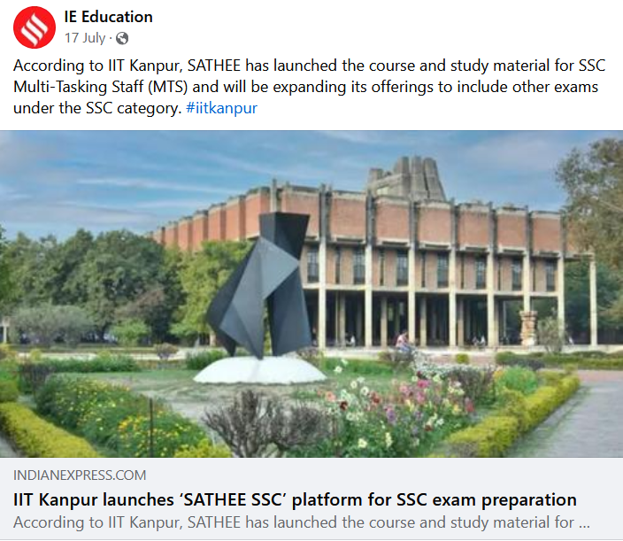According to IIT Kanpur, SATHEE has launched the course and study material for SSC Multi-Tasking Staff (MTS) and will be expanding its offerings to include other exams under the SSC category. #iitkanpur IIT Kanpur launches ‘SATHEE SSC’ platform for SSC exam preparation indianexpress.com IIT Kanpur launches ‘SATHEE SSC’ platform for SSC exam preparation
