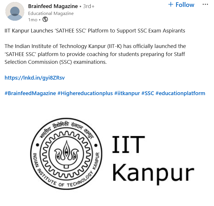 #BrainfeedMagazine #Highereducationplus #iitkanpur #SSC #educationplatform