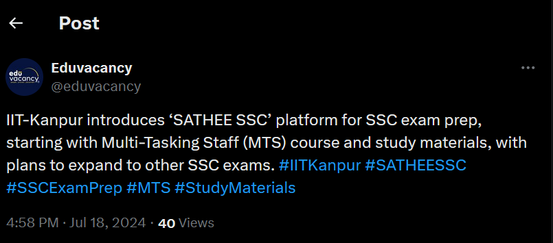 IIT-Kanpur introduces ‘SATHEE SSC’ platform for SSC exam prep, starting with Multi-Tasking Staff (MTS) course and study materials, with plans to expand to other SSC exams. #IITKanpur #SATHEESSC #SSCExamPrep #MTS #StudyMaterials